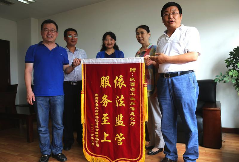 本报讯(记者 查正亮)“感谢你们的监督,近几年来,为我们公司节约了1亿多的资金!”月2日下午,陕西有色天宏瑞科硅材料有限责任公司苏旭盛总经理一行为省工信厅送来了“依法监管服务至上”的金色锦旗,陕西省工信厅总经济师羌薇,招标监管处处长宋亚朝等代表省工信厅接过了锦旗。