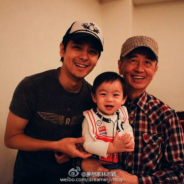 8月8日台湾过父亲节,林志颖在微博晒出与父亲的生前合影,林爸爸笑容和蔼,小Kimi十分可爱,一家三帅颜值高。