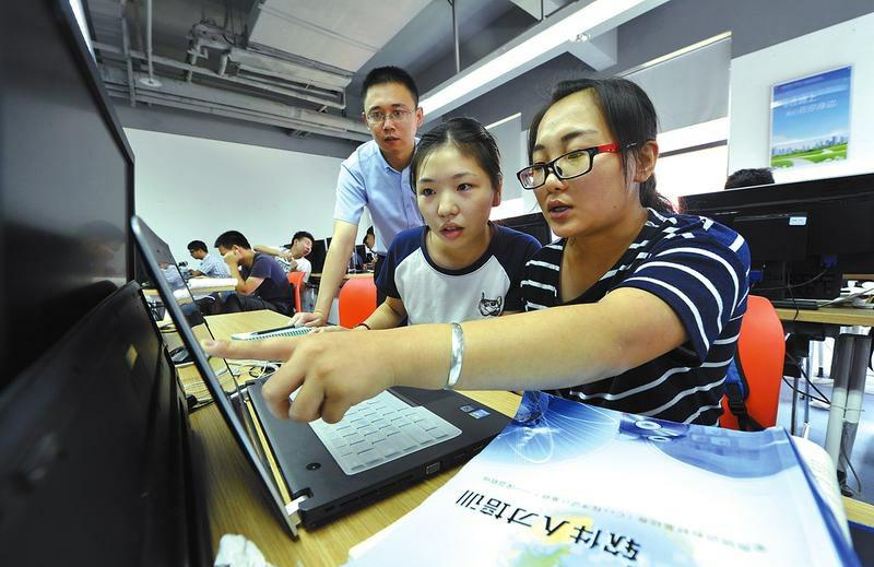 8月8日,在西咸新区沣西新城西部云谷的信息人才培训基地,大学生利用暑期学习软件开发技术。据了解,该基地运营两年多来,和高校的合作程度不断加深,目前已完成陕西各大高校应届毕业生就业创业培训共计8000人次。