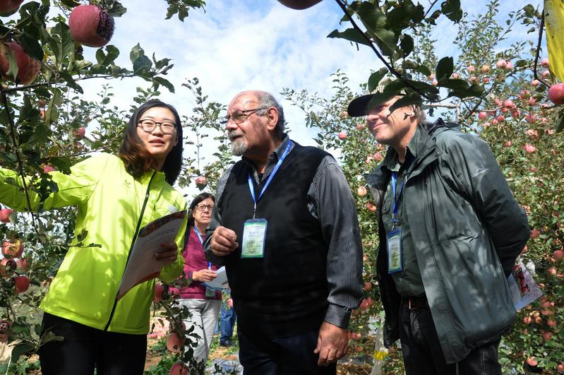 10月11日,来延安参加第一届世界苹果大会暨第九届中国·陕西(洛川)国际苹果博览会的园艺专家学者及与会代表共三百多人参观考察了延安宝塔区山地苹果,参会代表中有来自24个国家的84位外宾。