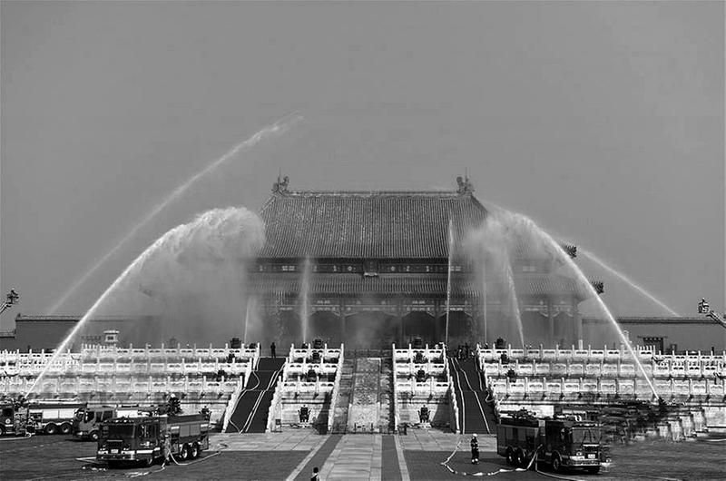 10月10日,故宫在太和殿举行消防演习,故宫博物院员工、现役消防官兵和专职队员约500人参加。演习旨在提升故宫防火能力,确保古建筑安全。