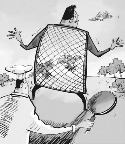 媒体调查发现,在一些地区,有不少职业捕鸟人,在候鸟迁徙之际用专业设备捕鸟,破坏了鸟类生态;捕鸟与鸟类交易,也形成了“捕鸟—交易—食用或圈养”的黑色利益链条。这正是: