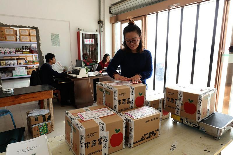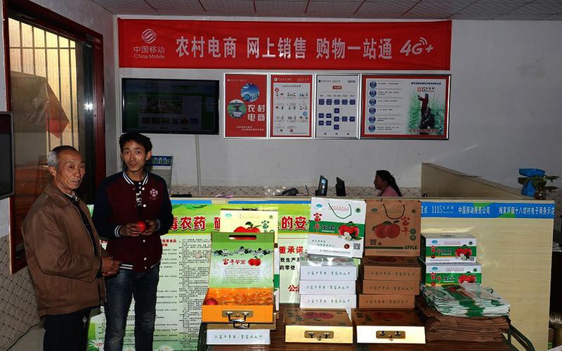梅家坪镇十八坊村电子商务示范点使当地苹果销往全国大市场