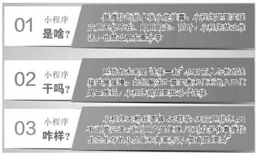 对于线上而言,微信团队明确,小程序更适合低频应用,特别是工具类应用。从这个角度看,小程序更像是服务号的“升级”,也就是连接内容以外的东西。