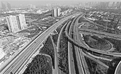 位于东三环的官厅立交四通八达 政府工作报告提出,要大力推进“大西安”建设,加快西咸一体化步伐,理顺西咸新区管理体制机制,优化西安、咸阳、西咸新区之间的城市功能。