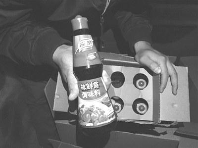 来自独流镇的造假者向记者展示假冒“家乐辣鲜露”样品,部分假调料以送货上门方式进京。