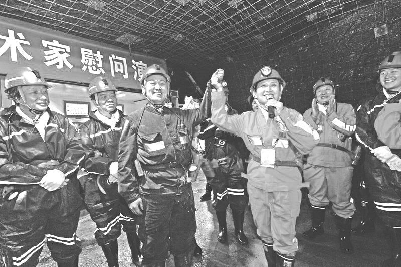 5月15日,由陕西省委宣传部、省文联共同主办的“到人民中去”文艺志愿服务主题活动正式启动。活动期间,由陕西省50余名优秀艺术家、文艺工作者组成的服务团,将深入榆林市基层,通过采风学习、慰问演出等形式讲述脱贫故事,宣传党的扶贫政策,动员社会各界力量关注、支持和参与脱贫攻坚。图为艺术家们在神东锦界煤矿井下为一线工人表演节目。