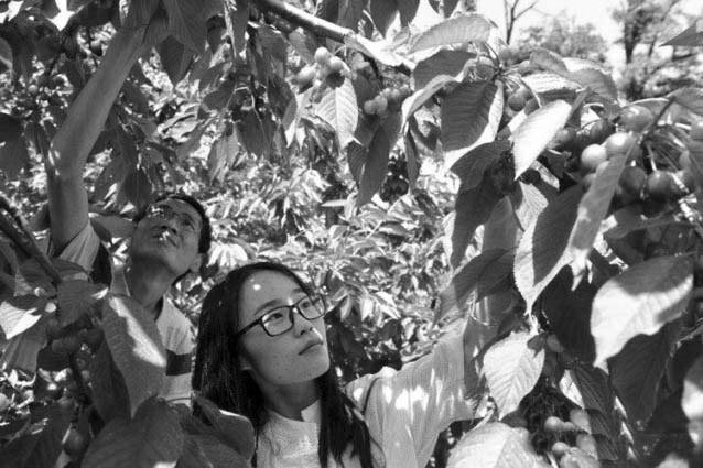 周至集贤镇金凤村樱桃园来了特殊帮工