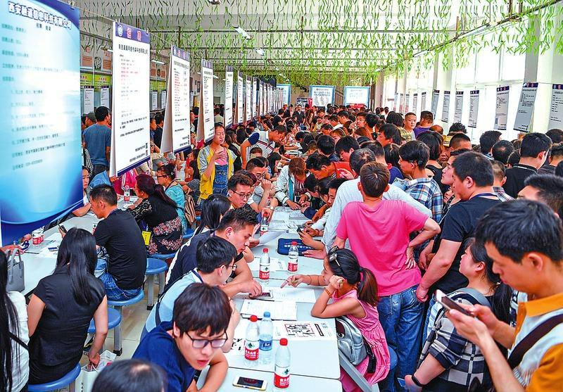 5月17日,由西安市残疾人劳动就业服务中心、陕西省城市经济学校联合举办的2017年西安市残疾人就业培训暨首届校园招聘洽谈会在陕西省城市经济学校举行。共有70余家用人单位面向残疾人提供852个适合残疾人就业的工作岗位和185个培训名额。图为残疾人求职者与用人单位洽谈工作事宜。