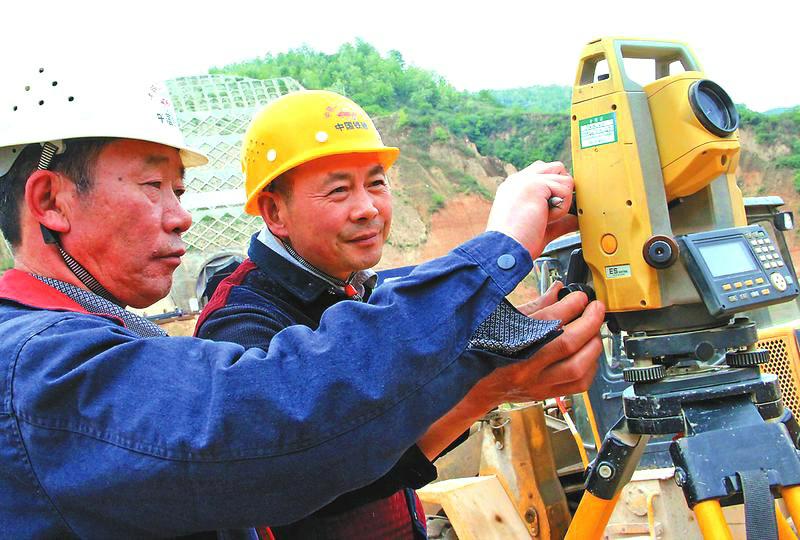 担负蒙华铁路7标3工区施工重任的中铁二十局六公司,将岗前安全教育、技术交底、技能培训、专业考试和岗中“1+1”导师带徒等作为“特殊福利”送给农民工,让“精准扶贫”成为习惯,切实提高农民工工资收入、专业技能和职业素养,确保施工生产安全、优质、快速推进。图为5月21日,测量技师夏开华(左)正“手把手”指导农民工现场测量。