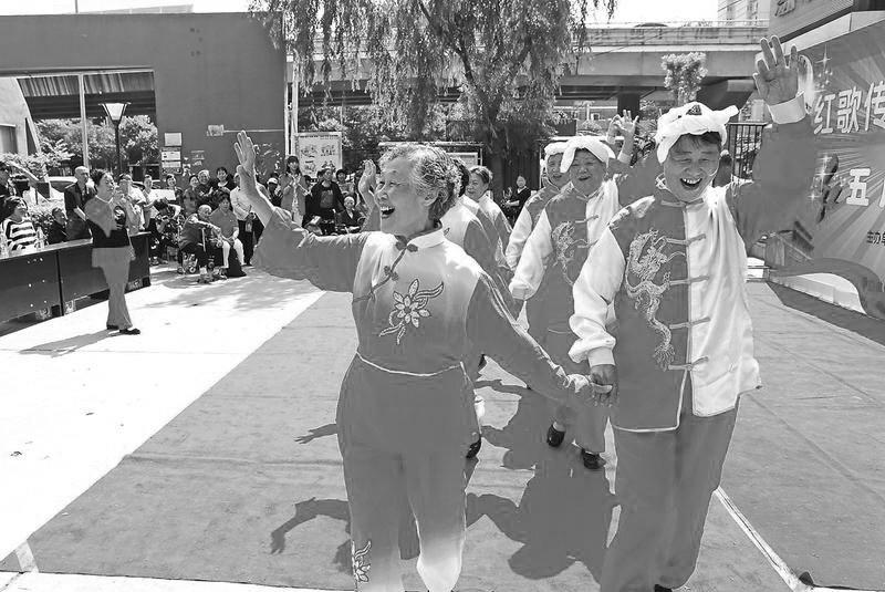 5月23日,西安市新城区胡家庙街办金泰社区“红歌传唱激情飞扬”红五月演唱会上,两鬓斑白的老人满怀豪情地表演。这些老人平均年龄65岁,全部来自社区红梅老年合唱团。12年来,合唱团坚持每周排练一次,多次在社区内外义务演出。