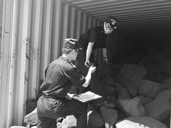 海关关员正在查验涉嫌走私进口的“洋垃圾”。