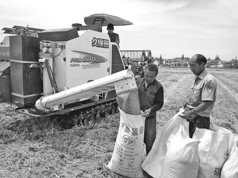 汉中市今年小麦、油菜喜获丰收,日前夏粮收割已全面展开。图为5月24日,在南郑县郭滩乡,农民抓住晴好天气,抢收小麦。