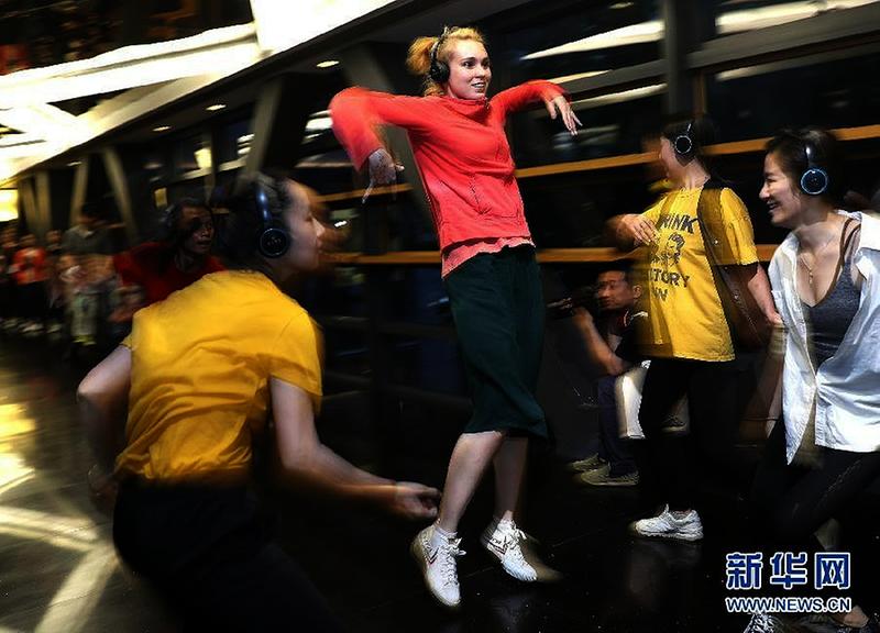 5月25日,演员在上海一人行天桥上表演小品。当日,第二届“表演艺术新天地”艺术节在上海举办。来自世界各地的16部艺术作品、173场文艺演出,涵盖戏剧、音乐、绘画、装置、舞蹈、诗会、马戏等艺术门类,为观众展现“人,在大地上诗意地栖居”的主题。