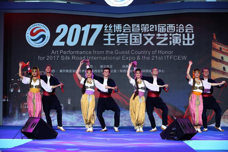 6月3日,2017丝博会暨第21届西洽会在西安开幕。由塞尔维亚共和国担任主宾国。当天下午,塞尔维亚艺术团在曲江国际会展中心B3馆进行了首场主宾国演出,塞尔维亚与陕西歌舞剧院的艺术家们为现场观众带来了精彩的表演。
