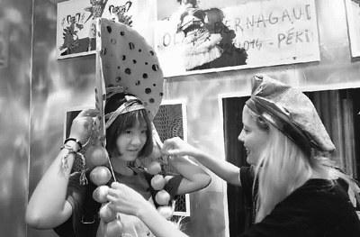 “2017淘宝造物节”日前在浙江杭州国际博览中心开幕。汇聚108家最具江湖味的淘宝顶级神店及众多网红大咖,在一个个精心搭建的特装展位里展示各自的神奇产品、创意及概念,引领时尚潮流。图为一名女孩在一家“毛哩”神店展位里试戴一件怪诞的头饰。