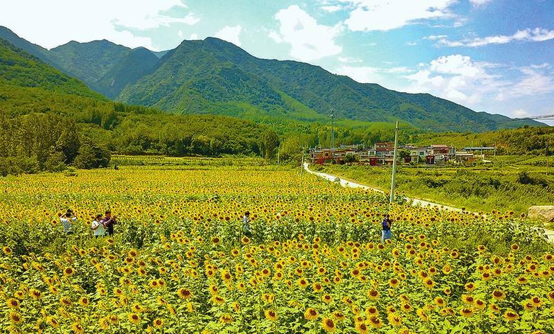 初秋时节,1200亩油葵花在西安市长安区杨庄盛放,美丽的油葵花吸引络绎不绝的游人在这里驻足留影,人们陶醉于大自然之中,品味生活的乐趣,欣赏大自然的美好风光。