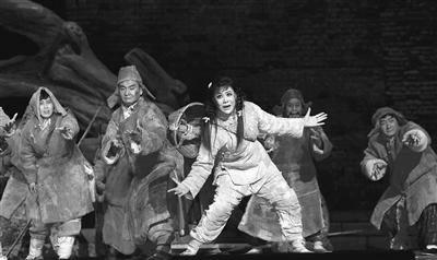 当晚,大幕开启,“呼啦啦的河南担,铺天盖地,一眼望不到边”的场景一下就抓住了观众的心。当衣衫褴褛、饥寒交迫的难民喊出“老天爷,为啥让河南遭灾啊”的时候,观众席的每一位观众都被带入了“一九四二”那段不堪回首、不忍直视的历史。在表现手法上,该剧融入了不少秦腔因素,极具陕西地域特色。众所周知,秦腔的特点是表演朴实、粗犷、深刻,以情动人,富有夸张性;而豫剧则是唱腔流畅、节奏鲜明、极具口语化,行腔酣畅。为了打造这部剧,主创人员投入了大量精力对两种不同的语言和旋律进行了融合,并以一种全新的舞台呈现演绎出来,让整个表演特接地气儿。
