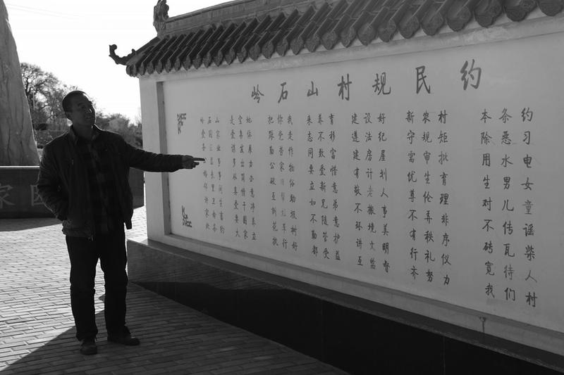 口口相传、代代继承勤俭节约、相互帮助的优良传统。一直到2015年,经岭石山村民、该县人大常委会副主任闫增奎悉心整理,216个字的“岭石山村规民约”非常醒目显现在一面2米多高的墙上。村里的男女老少、过往行人每次路过时,都要驻足观看,成为岭石山村一道独特的风光。