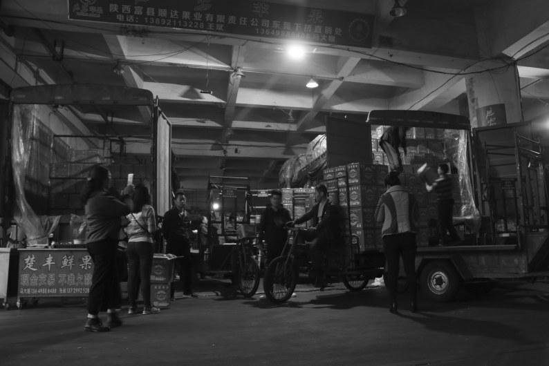 11月21日凌晨6点,东莞市果菜副食交易市场内当地批发商正在抢购富县“延安苹果” 本报记者 张宏科 “一年好景君须记,最是橙黄橘绿时”。在这收获的季节,素有“塞上小江南”、“陕北小关中”美誉的陕西富县的37万亩苹果喜获丰收。