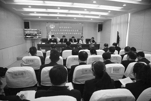 在主会场参加会议的有市中院部分班子成员、办公室主任、机关党委副书记和各县区法院院长、党总支书记、政工科长、办公室主任。全市两级法院全体干警在分会场聆听会议精神。