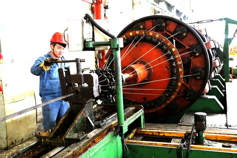 11月24日,咸阳宝石钢管钢绳有限公司合股绳车间员工在大型“高索”钢丝绳加工设备前操作。据介绍该公司是国内唯一的石油专用钢丝绳生产企业,公司拥有多项自主知识产权,并取得ISO9001质量体系认证和美国石油学会API会标使用权。产品远销美国、加拿大、俄罗斯、非洲及东南亚等国家,出口量逐年递增。