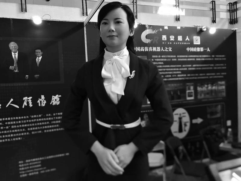 图为西安超人机器人公司“超悦”机器人