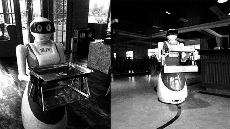 图为西安星探机器人公司餐厅服务机器人