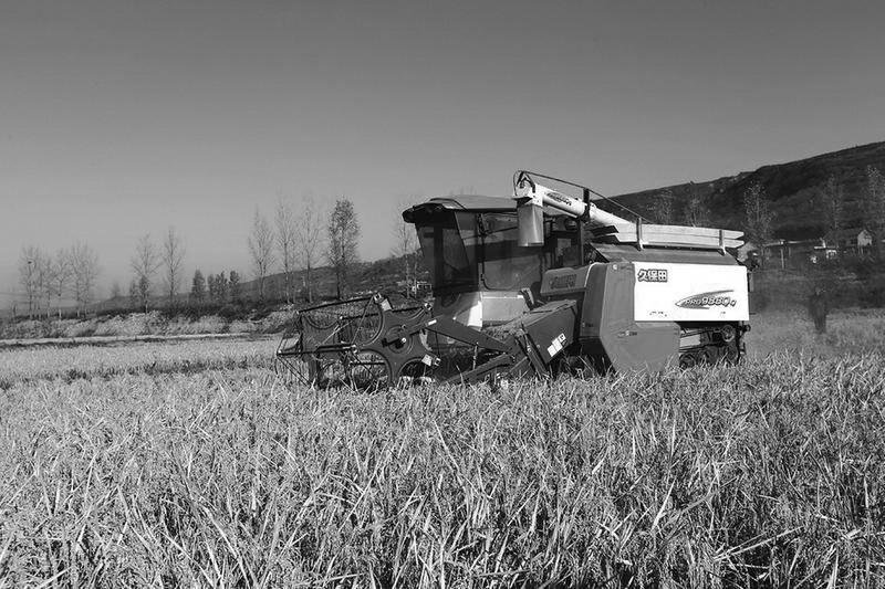 11月26日,收割机在西安市蓝田县焦岱镇稻荷农业公园内收割稻子。占地面积3800亩的稻荷农业公园项目,将依托岱峪河建成包含岱峪河景观绿廊、梦里稻乡体验板块、诗意荷田休闲板块的田园综合体。