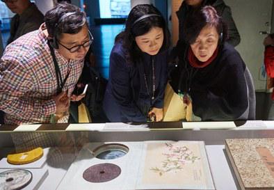 在台北故宫博物院,嘉宾在观看乾隆皇帝的文物收藏与包装艺术特展