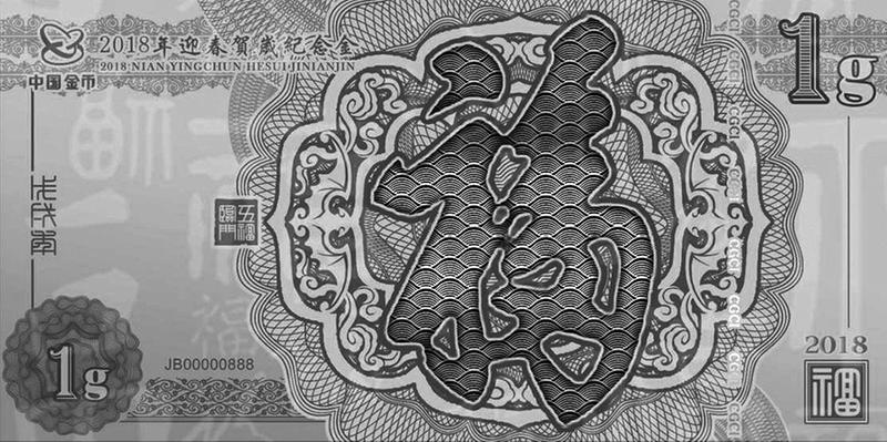 “2018年迎春贺岁纪念金(银)卡”将传统贺岁文化与喜庆祥和、平安富贵、喜上眉梢等吉祥图案相互融合,传递吉祥快乐、万事如意、大吉大利等寓意。1克金卡、3克及5克银卡共用正面图案以康熙手书“福”字为主图,内包含水纹,象征福如东海与五福临门之意,下方为装饰的蝙蝠纹样,富贵华丽。1克金卡、3克及5克银卡共用背面图案以营造“家”的概念为主题,透过窗户,呈现出千家万户的繁荣景象,炊烟袅袅,喜上眉梢,一派温馨祥和的气氛。