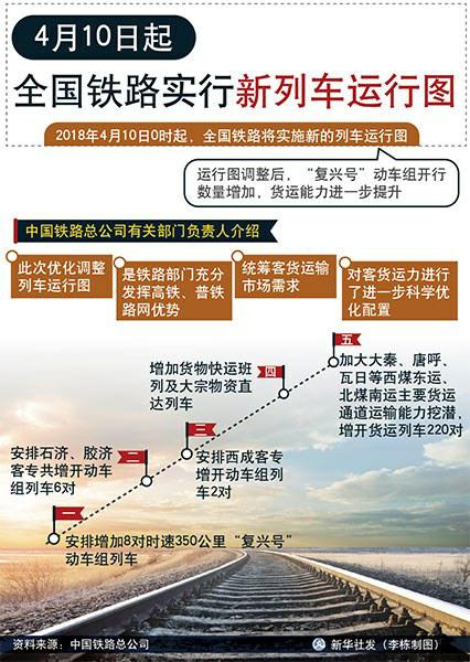 中国铁路总公司有关部门负责人介绍,此次优化调整列车运行图,是铁路部门充分发挥高铁、普铁路网优势,统筹客货运输市场需求,对客货运力进行了进一步科学优化配置。