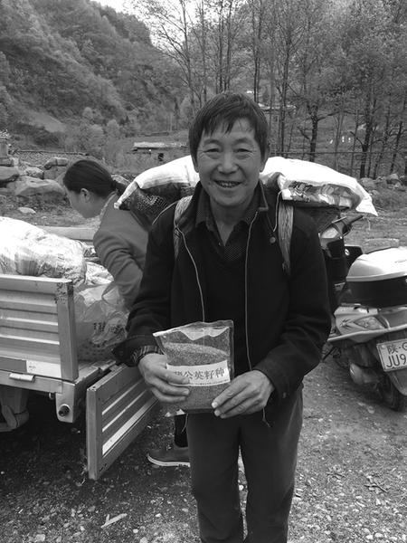 2018年4月12日,安康市平利县八仙云雾茶业有限公司与该镇深度贫困村韩河村28户贫困户签订苦荞收购协议,并现场免费赠送苦荞籽种300余斤、有机化肥28袋以及折合2500元的蒲公英种子。图为贫困户喜领帮扶籽种。