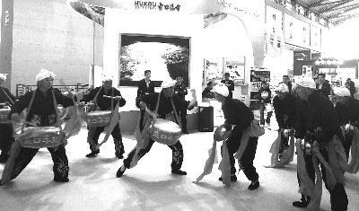3月30日至4月1日举办的2018西安丝绸之路国际旅游博览会,是国内唯一以“丝绸之路”为主题的大型旅游博览会,陕西各地区及陕文投、陕西旅游集团等大型文化企业,纷纷展现了众多好看、好玩、有文化含量的旅游项目及产品。在延安市展台前,十几位陕北大汉打起了腰鼓。为了避免观众误认为这是安塞腰鼓,他们不但把“壶口斗鼓”几个字写在鼓身上,还出现在他们身后的壶口瀑布宣传视频中。