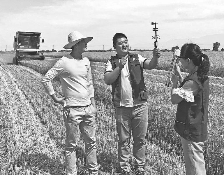 日前,宝鸡市陈仓区气象局党员志愿者携带便携式气象仪器,来到该区慕仪镇第四村现场观测气象数据,把实时气象信息送到农民手中,确保当地夏粮颗粒归仓。