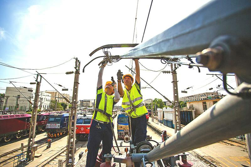 近日,在中国铁路西安局集团公司西安机务段机车整备场,检修职工头顶烈日检修机车。为了保证旅客列车正常开行,检修职工在车顶钢板温度、车内机械间环温均高达60℃的环境中,精心检查养护机车各部位电器设备,确保机车安全行驶。