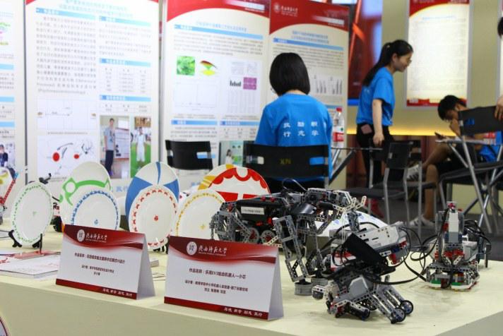 在展馆现场,记者看到,全彩3D打印、乐高机器人、仿生“水母”新型淡水分离器、VR安全教育培训装置等众多高校科技成果展台前,吸引了大量人士驻足观看。“我们的这个系统已经和陕西一家公司建立了合作关系,对项目进行联合研发。”长安大学参展学员刘春雷告诉记者,他们团队针对施工安全教育问题,设计了一种VR虚拟体验室——VR安全教育培训装置。该系统利用VR技术,模拟桥梁、隧道、及道路17种易发生的异常事故,使得原始工地“再现”于虚拟三维空间中,配合自主研发的振动台系统,使得多个体验者同时身临其境地体验可能出现的事故,并对体验者进行安全教育。