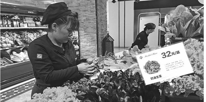 随看生活水平的提高,人们的消费观念也发生了巨大变化,健康意识不断增强,追求绿色、健康、新鲜的食品蔬菜已成为人民群众向往美好生活的重要体现。近日,在西安市南门外的一家超市内,工作人员正从种植盆里为顾客摘新鲜的蔬菜。这家超市设置了盆栽蔬菜销售专区,顾客可以让销售人员现场采摘按重量计费,也可以连种植盆一起带回家。