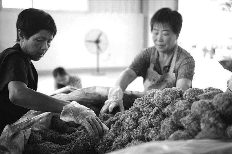 近年来,陕西省西乡县在实施易地扶贫搬迁的过程中,针对集中安置社区状况,因地制宜,加强产业发展和就业扶持,积极引进劳动密集型企业入驻,开办社区工厂,使搬迁居民在家门口实现稳定增收。图为西乡县高土坝社区的女工在社区内的松花蛋加工厂工作。