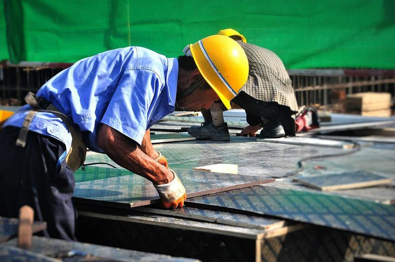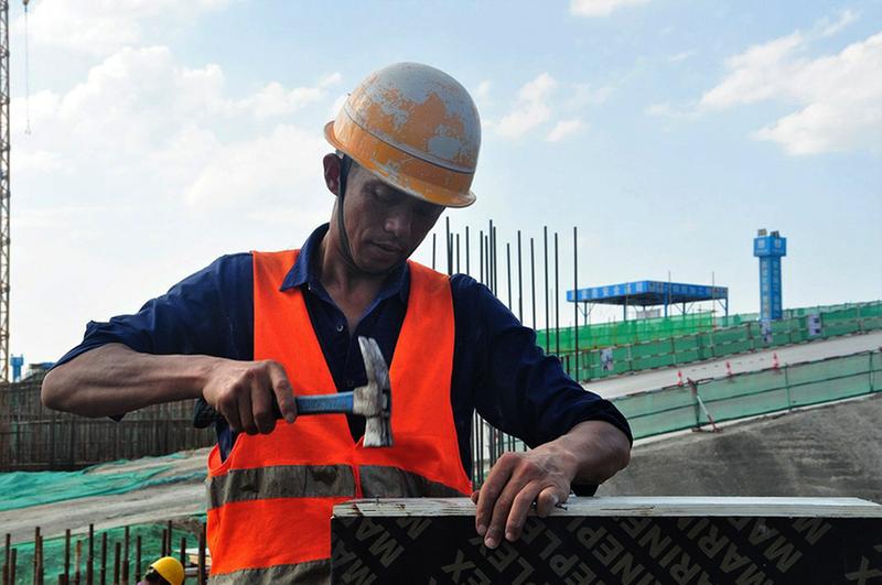 (图⑤、⑩、⑪)7月18日下午16:30,西安丝路国际会展中心项目,工人们正在进行模板安装。50岁的木工刘小哲说,工地上每天7小时的工作时长比自己在外面揽活干要好得多。他说,只要有活,自己可以天天干,等到把活干完再回家好好休息。“辛苦点不怕,我们怕的是没活干。”
