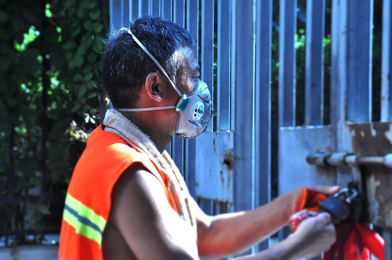 (图④、⑨)7月18日,下午18:00左右,碑林区柿园路,执勤交警邓鹏正在指挥交通。看到记者拍照,他面对镜头敬了个礼,说:“你们也不容易!”