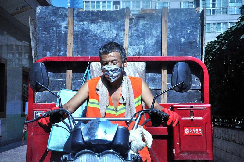 (图①、③)7月17日下午16:50左右,碑林区东关南街某小区内,一位垃圾清运工人正驾车着三轮车准备离开。他每天凌晨4点开始来到该小区清运垃圾,19:00左右回家。期间,他要往返3趟于小区和垃圾中转站之间,每一趟从分拣、运出至返程需要4个小时左右。最近正在上初中的儿子放假了,偶尔过来给他帮帮忙,分拣的效率提高了不少,他可以比往常更早一些回家。