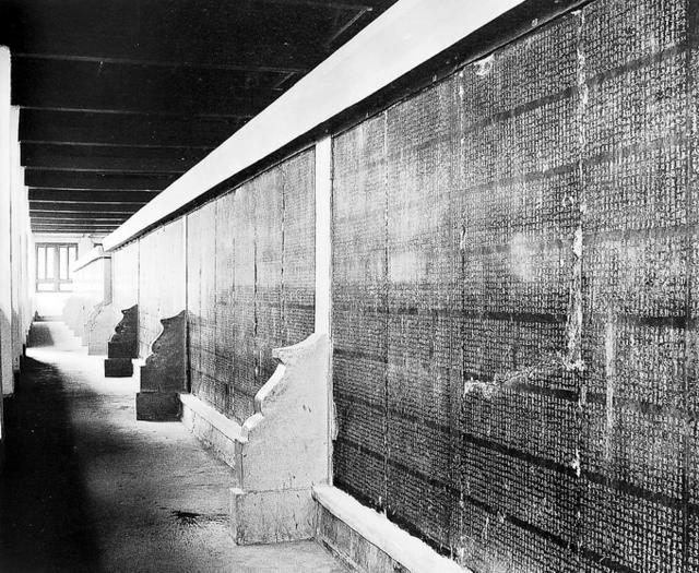 《开成石经》由114块巨大的青石组成,碑上共镌刻了650252个字,内容包括了儒家最重要的12部典籍。唐开成二年(837年)刻成后的石经立于唐长安城的国子监内,成为当时知识分子必读之书,同时也是读经者抄录校对的标准。