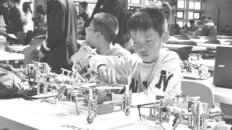 近年来,陕西省通过举办青少年机器人大赛、青少年科技创新大赛、实验室开放等各种活动,培养青少年对科学的兴趣,激发孩子们“仰望星空”。图为机器人大赛和实验中的孩子们。