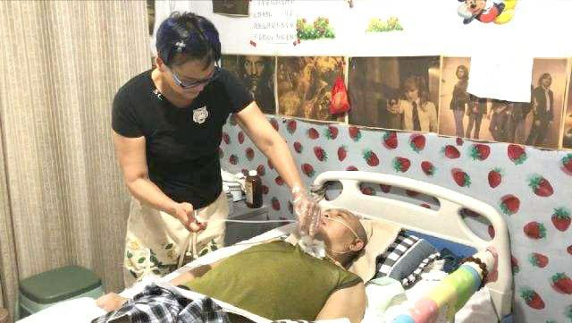 家里的“顶梁柱”塌了,照顾病人的千钧重担,主要落在了张娟身上。朱战军气管被切开,短则十几分钟、长则一两个小时就会返痰,张娟一听到“哼哼”的声音,就要拿仪器为丈夫吸痰,多少个夜晚没有睡过一次安稳觉。白天,张娟每隔两三个小时就要为丈夫翻身、扣背、按摩,做四肢康复,隔三四个小时就要注射一次流食。卧床两年多来,朱战军从没有长过褥疮。