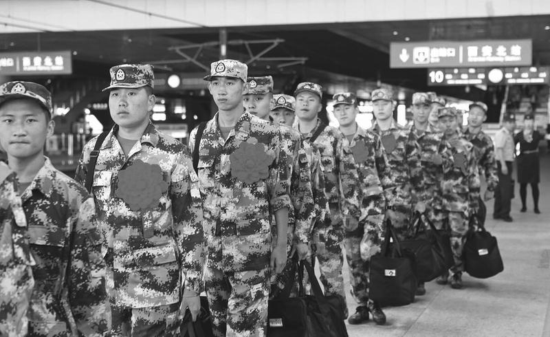 10日,在西安北站,一批西安籍新兵乘坐高铁奔赴军营,开始崭新的军旅生活。