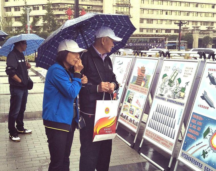 昨天,9·18防空警报拉响日,西安市碑林区人防办在钟楼街边设置防空预警展板并向市民发放人防知识手册。