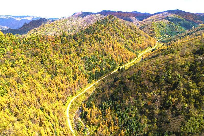 初秋时节,走进位于陕西勉县长沟河镇的庙坪林场,一片叠翠流金、层林尽染的景象。在秋风轻抚下,呈现出不同的色彩,像打翻了的颜料盘,浸染着山川河谷,如诗如画,美不胜收。庙坪林场地处秦岭南麓,占地面积12000余公顷,海拔在1300—2600米之间。境内生长着冷杉、云杉、华山松、落叶松、红桦180多种高等植物,森林覆盖率达96.6%,还活跃着羚牛、林麝、金雕、金钱豹等国家级保护动物。