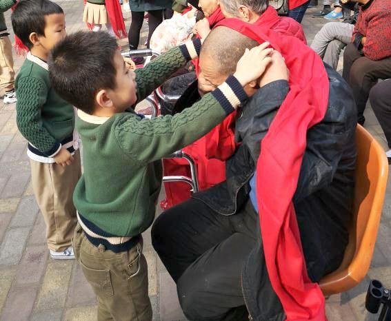 节目最后,孩子们给老人系上他们送的红围巾,与老人一起合影,老人们紧紧地抱着孩子不愿松开,甚至有几位老人落了泪,这应该就是他们眷恋的温暖吧。