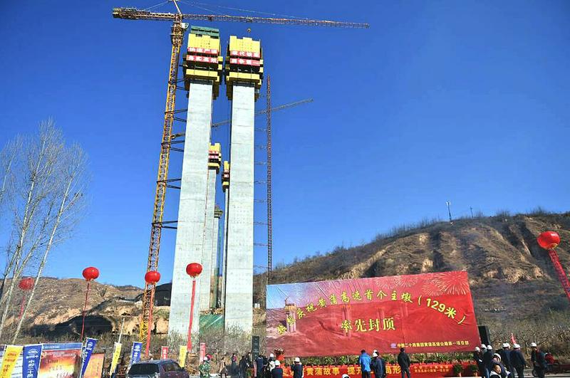 近日,中铁二十局集团承建的位于陕西省境内的黄蒲高速公路控制性工程——石堡川河特大桥实现首个主墩封顶,为后续展开大面积施工提供了良好保障。据了解,黄(龙)蒲(城)高速公路全长约80.09公里,与渭蒲高速起点相连,是陕西省规划主骨架网“六纵五横”中的重要组成部分。图为此次首墩封顶的是石堡川河特大桥最高桥墩,桥墩高129米。